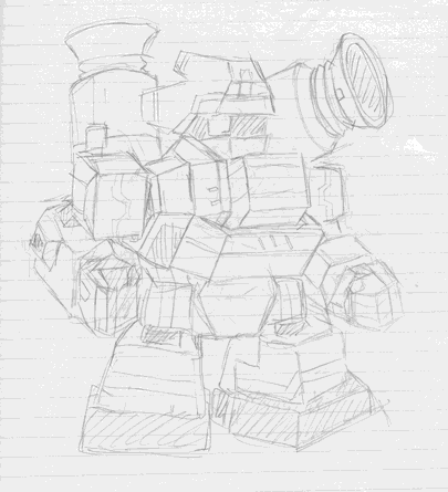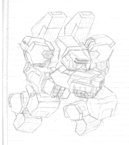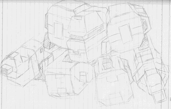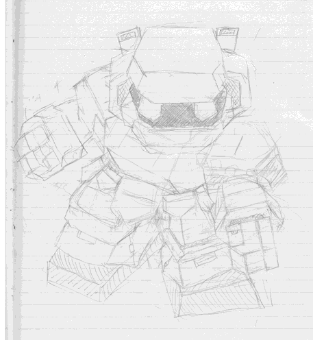 大学ノートにシャーペン描き、スキャンしてリサイズ・・・完全にラフ状態ですが。
